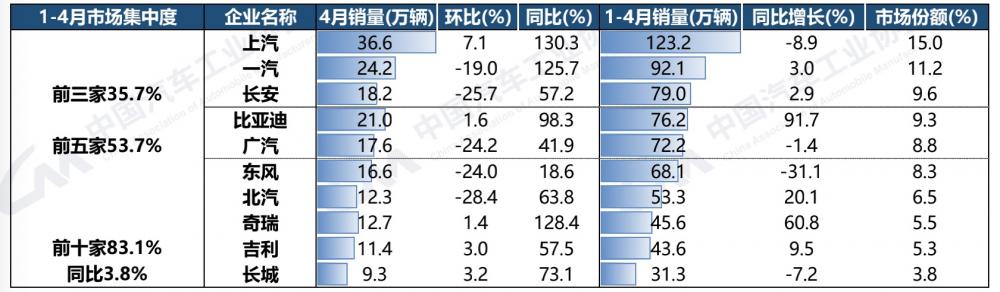 4月份汽車銷量